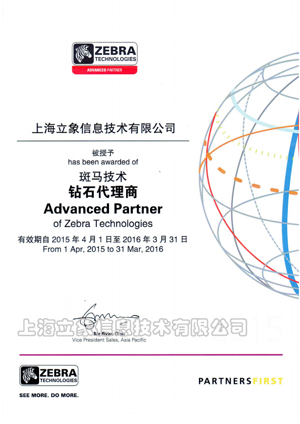 祝賀上海立象成為“2015年ZEBRA(斑馬)條碼打印機鉆石代理商”