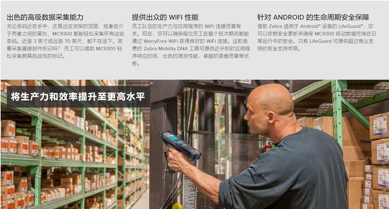 每天,超過三百萬的工人使用MC9000系列移動(dòng)計(jì)算機(jī)來簡化世界各地倉庫和制造工廠中的流程。但是現(xiàn)在您需要每天處理和發(fā)送更多訂單,而且比以往更快。MC9300推出了可以實(shí)現(xiàn)這一目標(biāo)的移動(dòng)計(jì)算機(jī),它是世界上暢銷,受信任的企業(yè)級(jí)移動(dòng)計(jì)算機(jī)的下一步發(fā)展。借助Android,您的員工已經(jīng)熟知的操作系統(tǒng),更大的高級(jí)觸摸屏等,您的員工將獲得終極的簡化。以終極的處理能力和內(nèi)存處理所有應(yīng)用程序。新的數(shù)據(jù)捕獲功能包括可選的前后攝像頭,非凡的掃描范圍和出色的直接零件標(biāo)記(DPM)捕獲。一次充電后,新電池的使用壽命是MC9200的兩倍。它是有史以來堅(jiān)固的MC9000系列,可以在任何環(huán)境下(包括冷凍機(jī))幾乎與同類產(chǎn)品中的所有設(shè)備相比,具有更長的使用壽命。新的Mobility DNA解決方案使設(shè)備,操作系統(tǒng)安全性和電池管理變得容易,同時(shí)提供了前所未有的強(qiáng)大無線連接。而且,由于您可以開箱即用地運(yùn)行現(xiàn)有的TE應(yīng)用程序,因此遷移到Android并非易事。