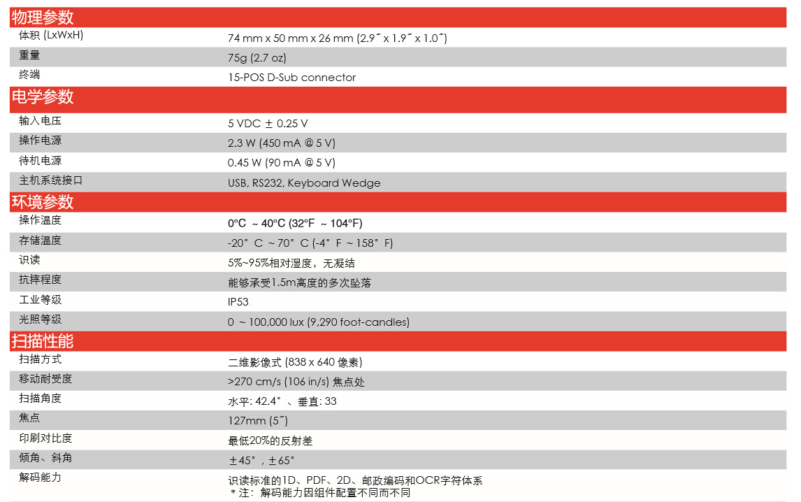 • 高可見度LED瞄準器:非激光瞄準能夠精確提供掃描指 示,創(chuàng)造了一個用戶友好型操作環(huán)境,同時消除了眼部傷 害的風險