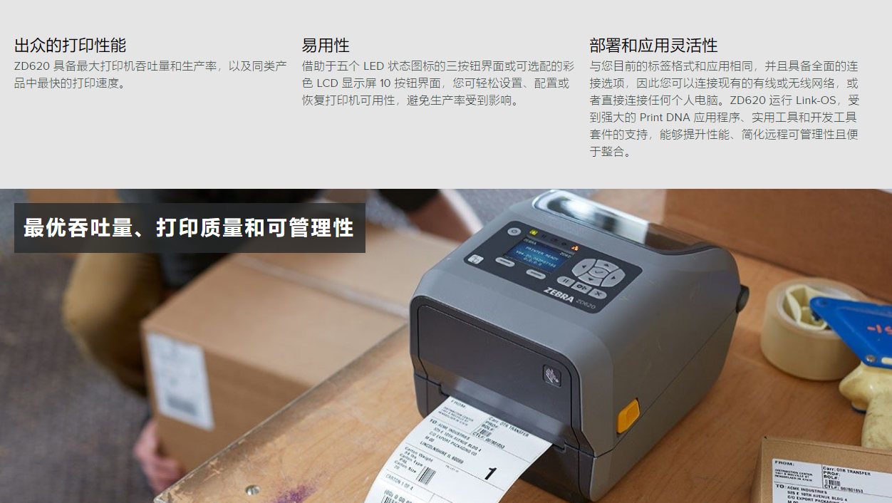 ZD620 提供出眾的打印質(zhì)量、生產(chǎn)率、應(yīng)用靈活性和管理簡便性,滿足您的所需。這款高端桌面熱敏打印機(jī)外形緊湊,提供先進(jìn)的工業(yè)打印質(zhì)量,并擁有同類產(chǎn)品中更快的速度和更好的質(zhì)量。